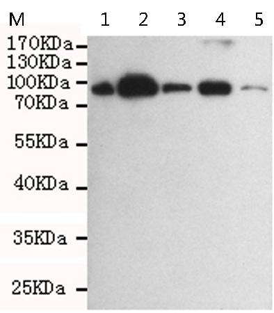 Raji ,K562, Hela, Jurkat and THP-1 cell lysates